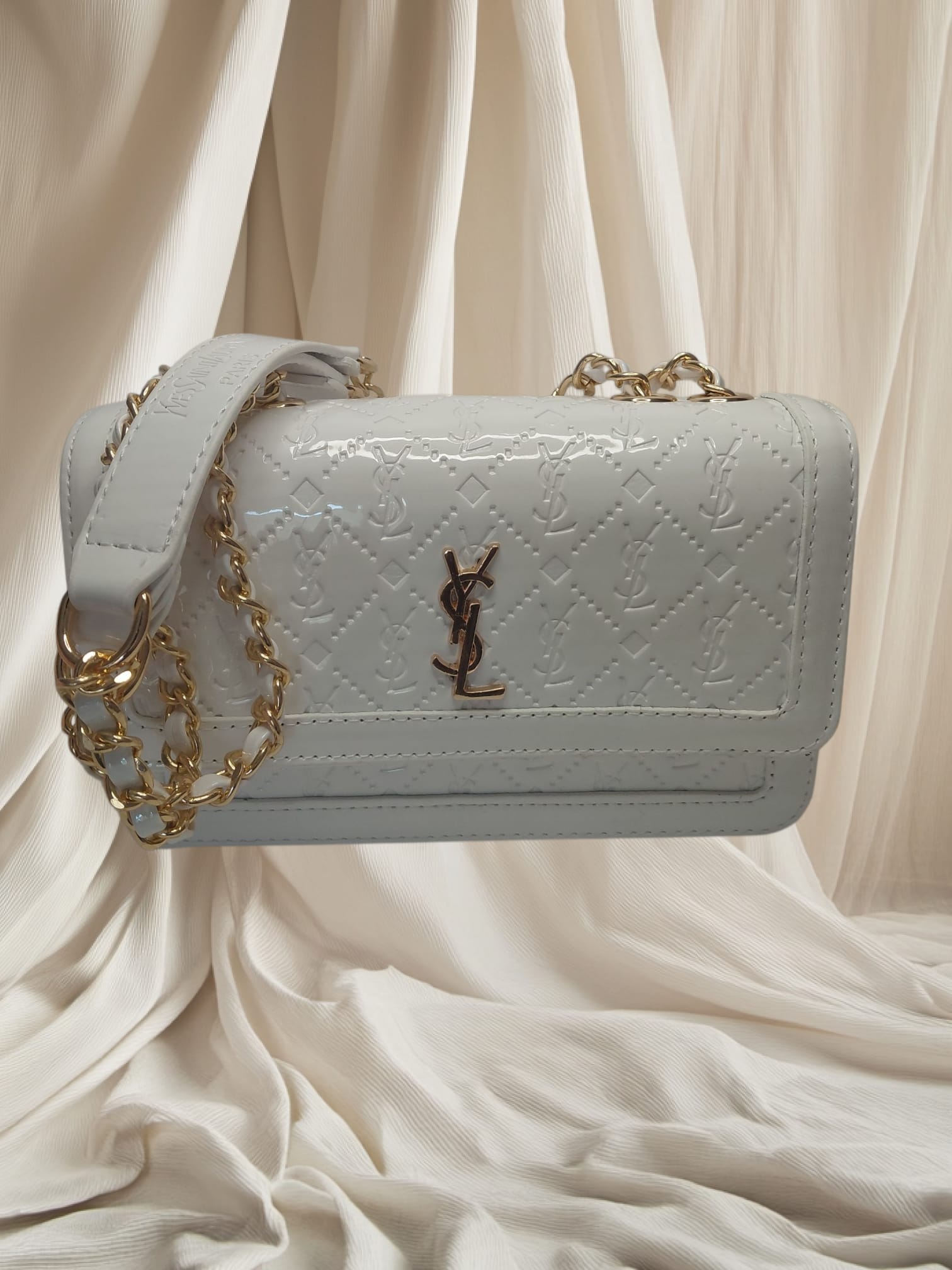 Prenses çanta ürünümüz parlak beyaz tonundadır.
